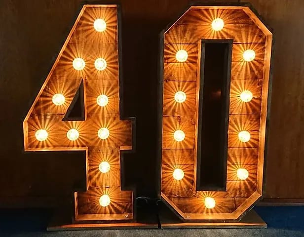 Why not add some rustic led light up numbers to your event, we have these available in all numbers and have White LED too.