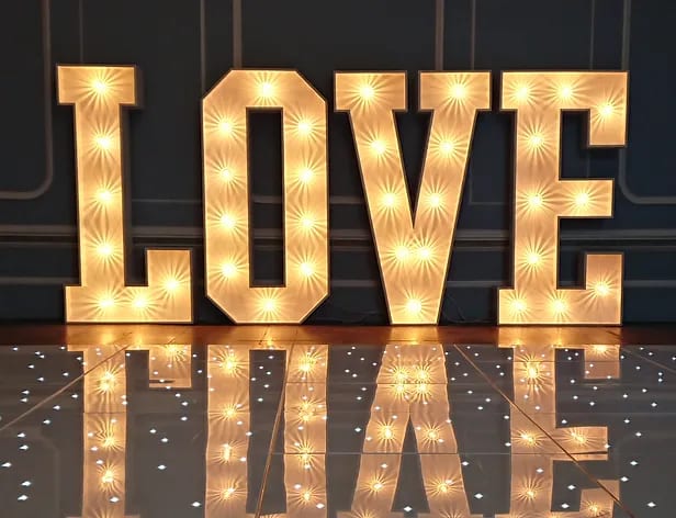 White LOVE Led light up letters to hire in Essex